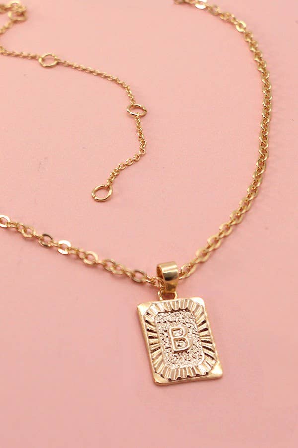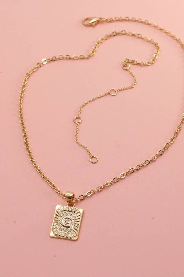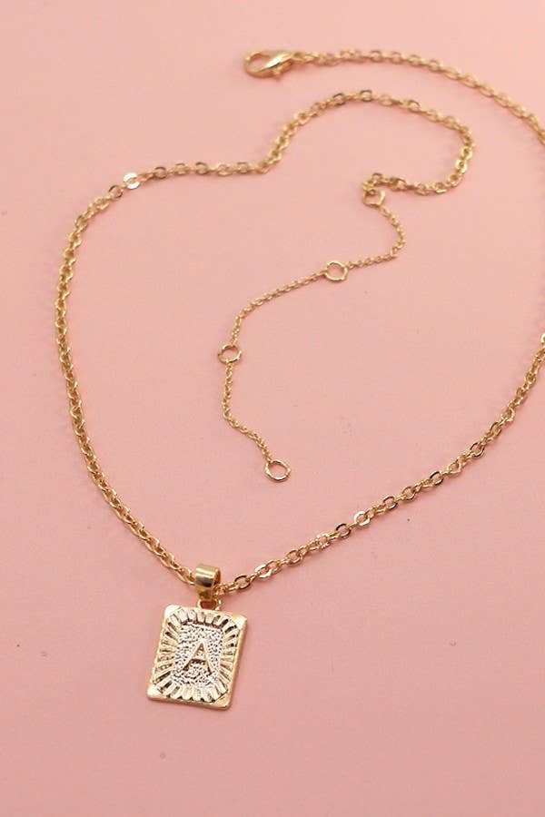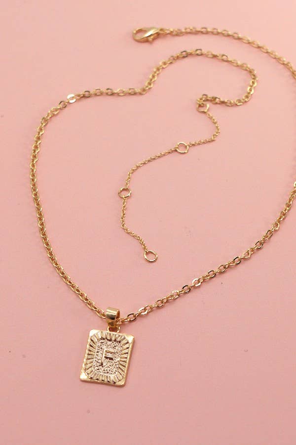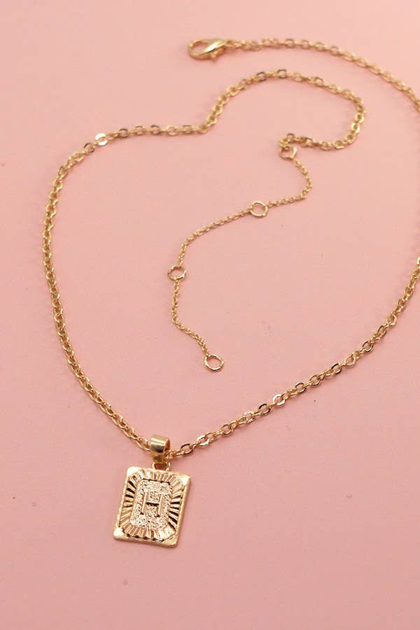 MONOGRAM INITIAL RECTANGLE PEARLY CHARM NECKLACE | 80N181