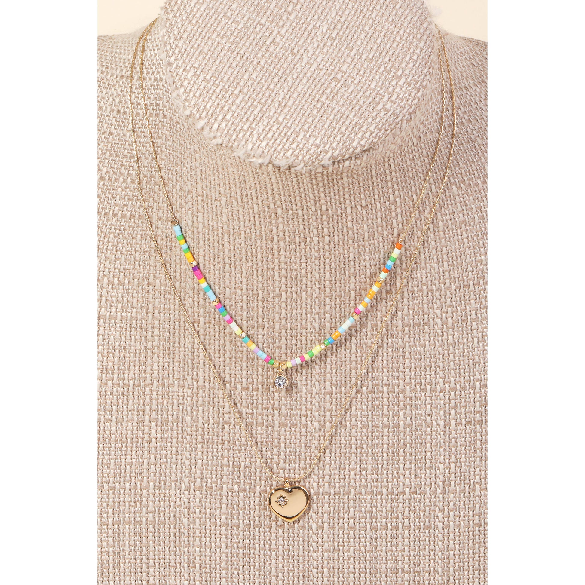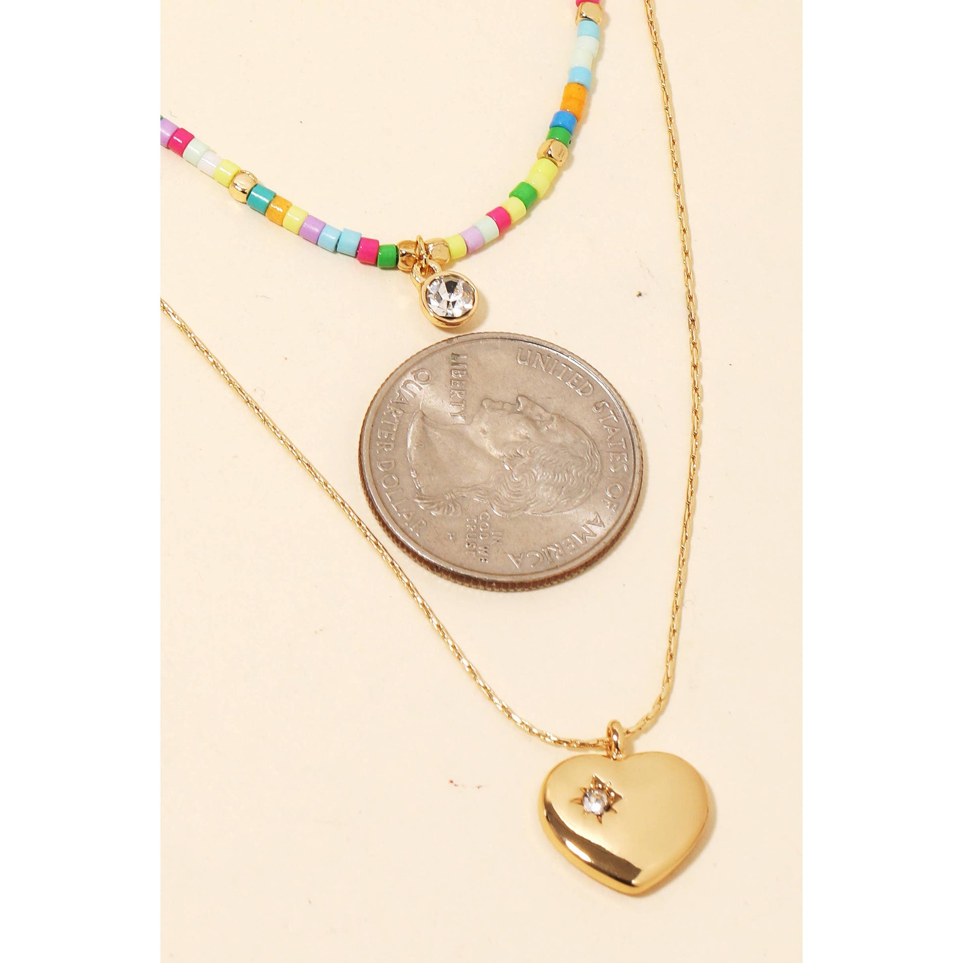 Warped Hoop Pendant Beaded And Chain Layered Necklace