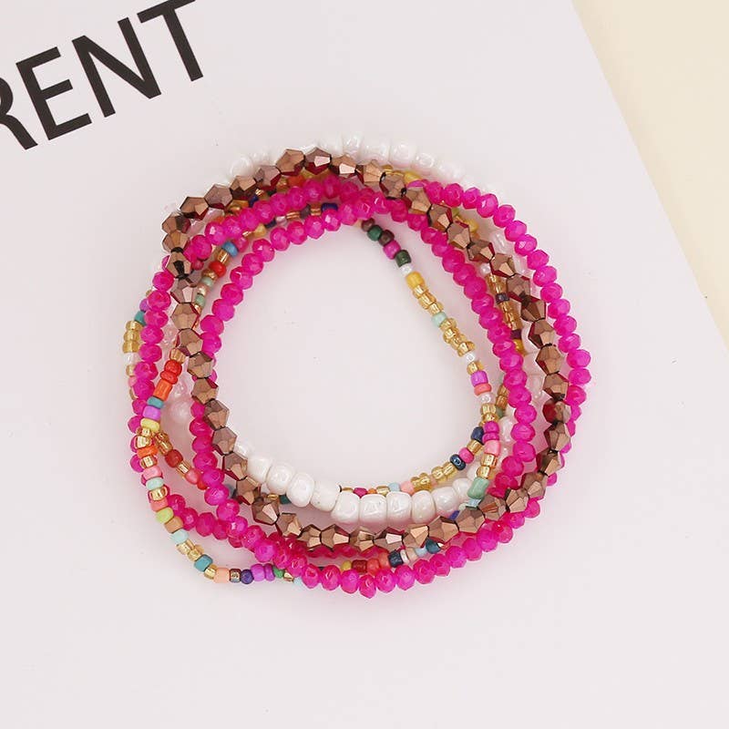 Assorted Faceted And Metallic Beaded Bracelet Set